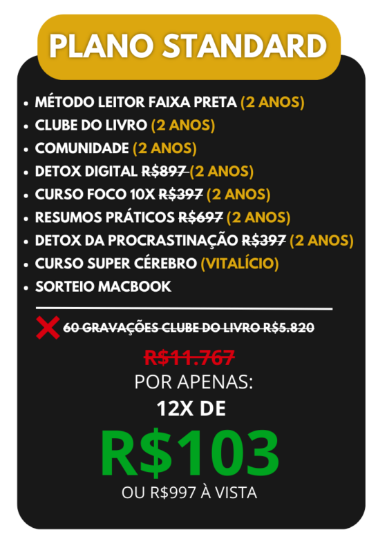 Ganhe mais 1 ano de acesso ao Método Leitor Faixa Preta. Ao todo, serão 2 anos para aprofundar seu aprendizado, incluso todas atualizações.